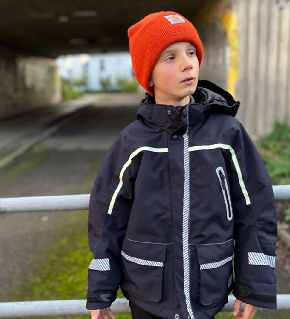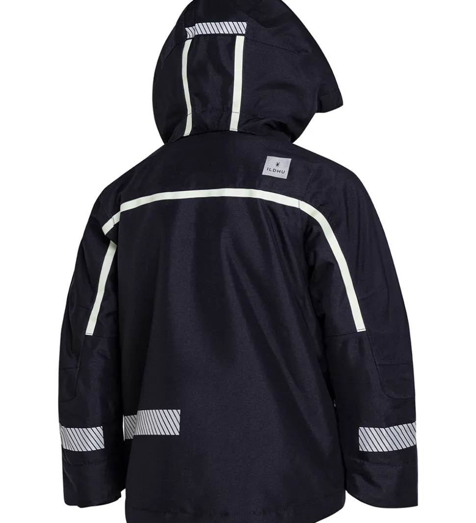 Lækker ILDHU vinterjakke i navyblå med mange reflekser for høj synlighed i trafikken.