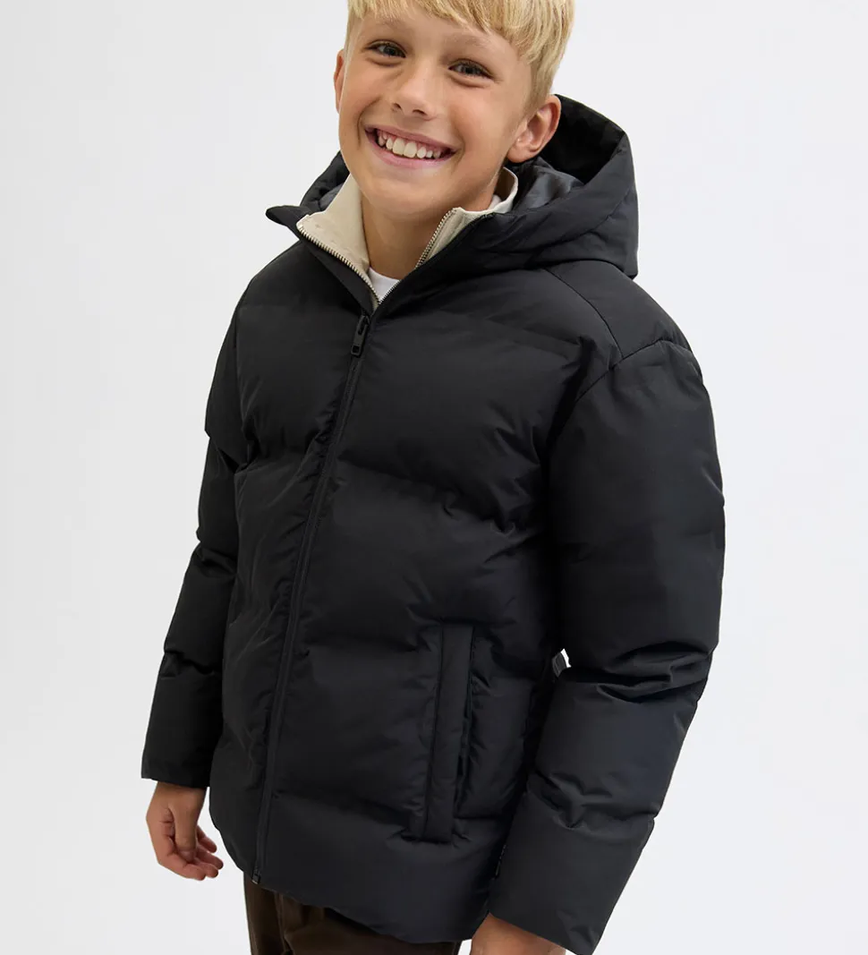 Flot Jack & Jones dynejakke i sort med en indpræget, quiltet struktur.