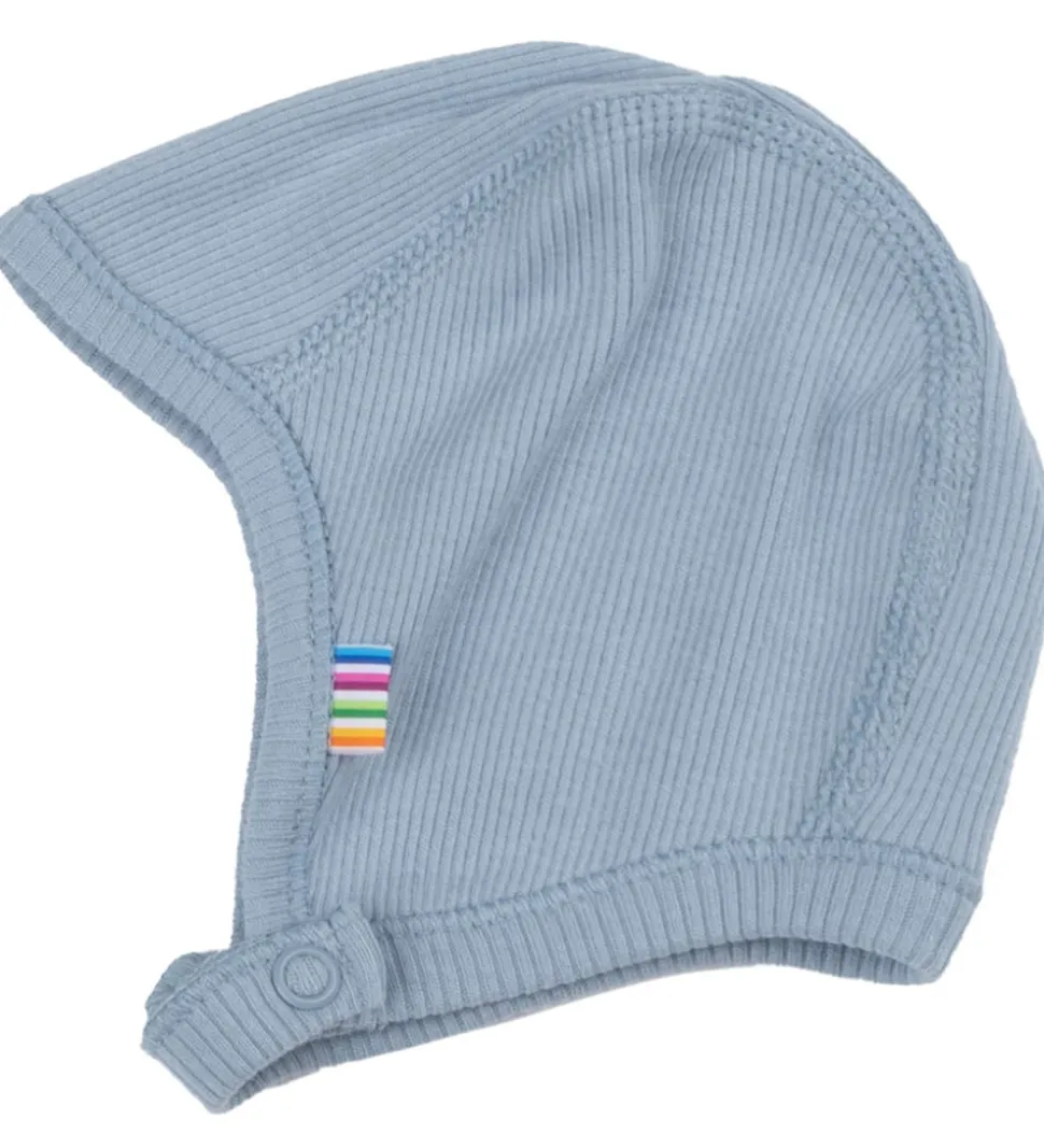 Babyhjelmen har en rund pasform, der sidder tæt omkring barnets hoved og beskytter mod vind og kulde. Joha babyhjelmen er designet med en ribkant langs kanten og en praktisk trykknaplukning under hagen som har to indstillinger for sikker pasform.
