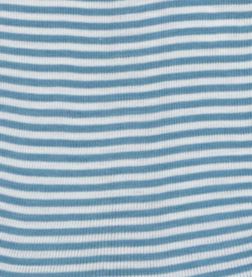 Lækker Joha babyhjelm i blå med striber og et praktisk bånd under hagen. Denne babyhjelm fra Joha giver et smart og behageligt look til de små.