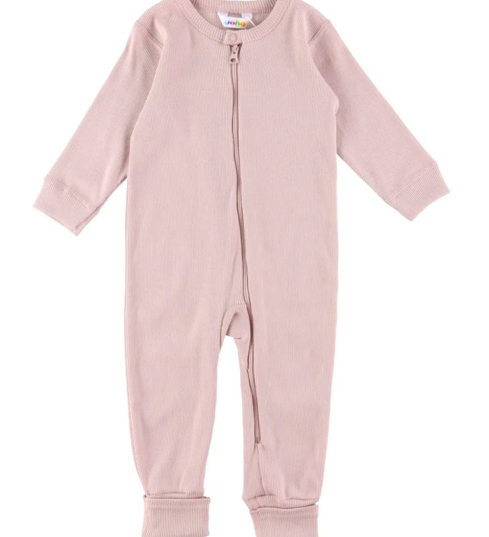 Sød Joha heldragt i ensfarvet støvet rosa med ribstruktur.