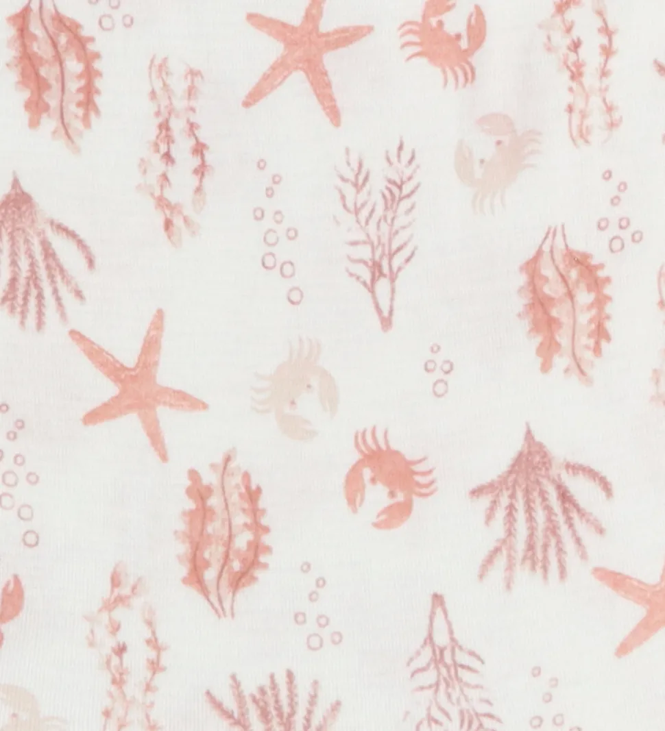 Lækker Joha heldragt i hvid med et sødt havmotiv bestående af krabber, søstjerner og tang i rosa nuancer.