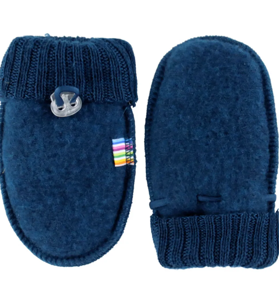 Joha lufferne er fremstillet af en kraftig, filtet merinouldskvalitet, der kan holde barnets hænder dejlig varme på de kølige dage.