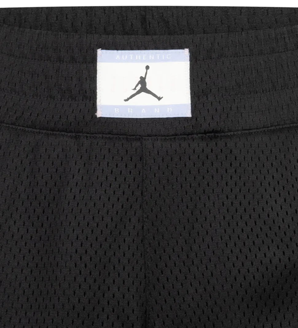 Smarte Jordan shorts i en lækker sort meshkvalitet i to lag og med et hvidt jumpman-logo broderet på højre ben og et hvidt “Jordan” print på venstre ben. Jordan shortsene har bukseben med høje slidser i hver side, med hvide trykknapper. Shortsene fra Jordan har desuden åbne forlommer og en bred, elastisk talje med en firkantet brand- og logoapplikation fortil.