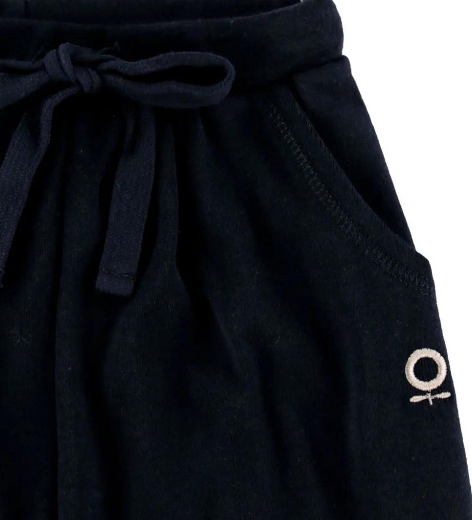 Flotte bukser fra Katvig i navyblå med et lille, hvidt logo broderet på venstre lår. Bukserne har en elastisk talje og justerbare bindebånd foran. De har to lommer foran og en baglomme. Bukserne har en afslappet pasform.