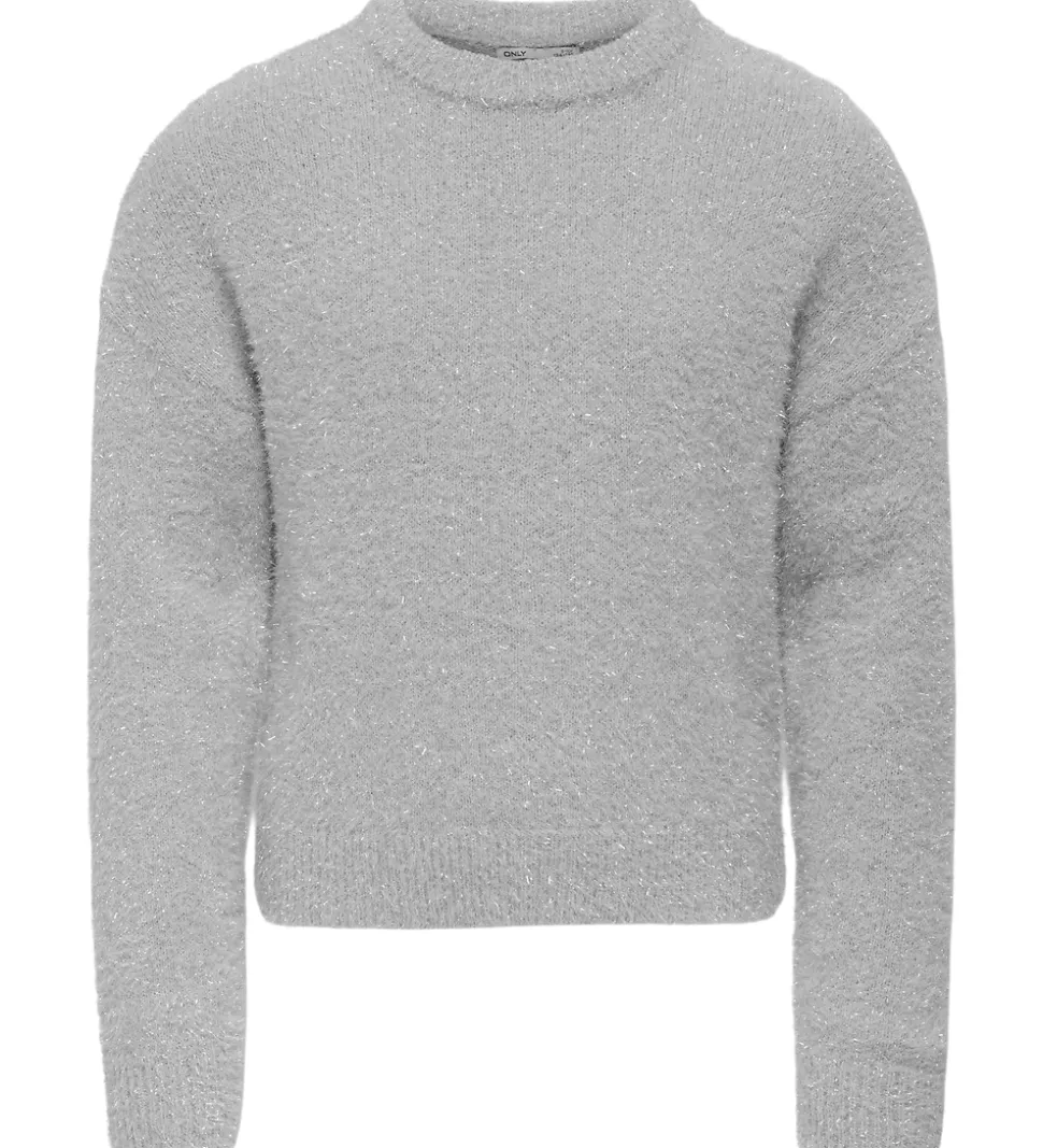 Elegant bluse fra Kids Only i en lysegrå nuance med sølvfarvede glitterdetaljer.