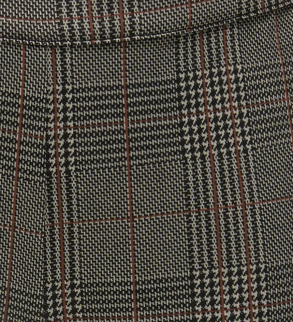 Flotte bukser fra Kids Only i et stilfuldt ternet mønster med nuancer af beige og sort, suppleret med subtile røde linjer. Kids Only bukserne præsenterer en klassisk pasform med lidt vide ben og en elastikkant.