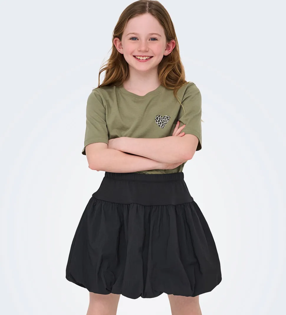 Flot Kids Only nederdel i en klassisk, sort farve. Kids Only nederdelen har en løs pasform med elastisk talje, der sikrer en god pasform. Stoffet har en let, krøllet struktur som giver et stilfuldt look.