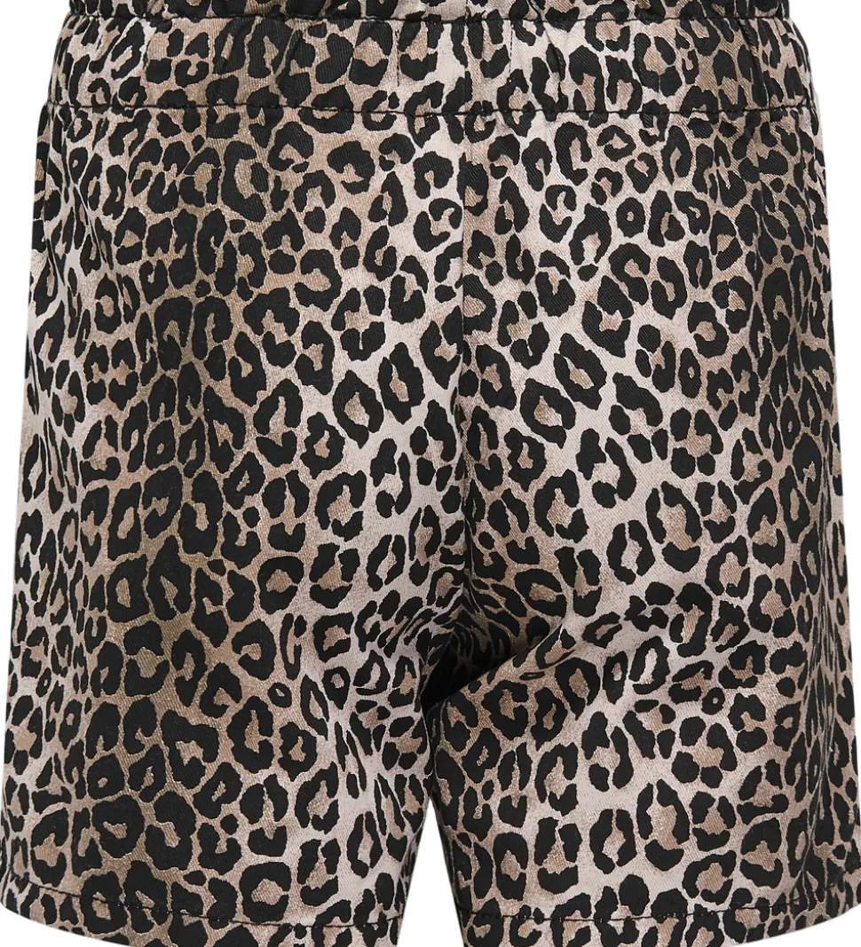 Stilfulde Kids Only shorts med et iøjnefaldende leopardmønster i nuancer af sort, brun og beige.