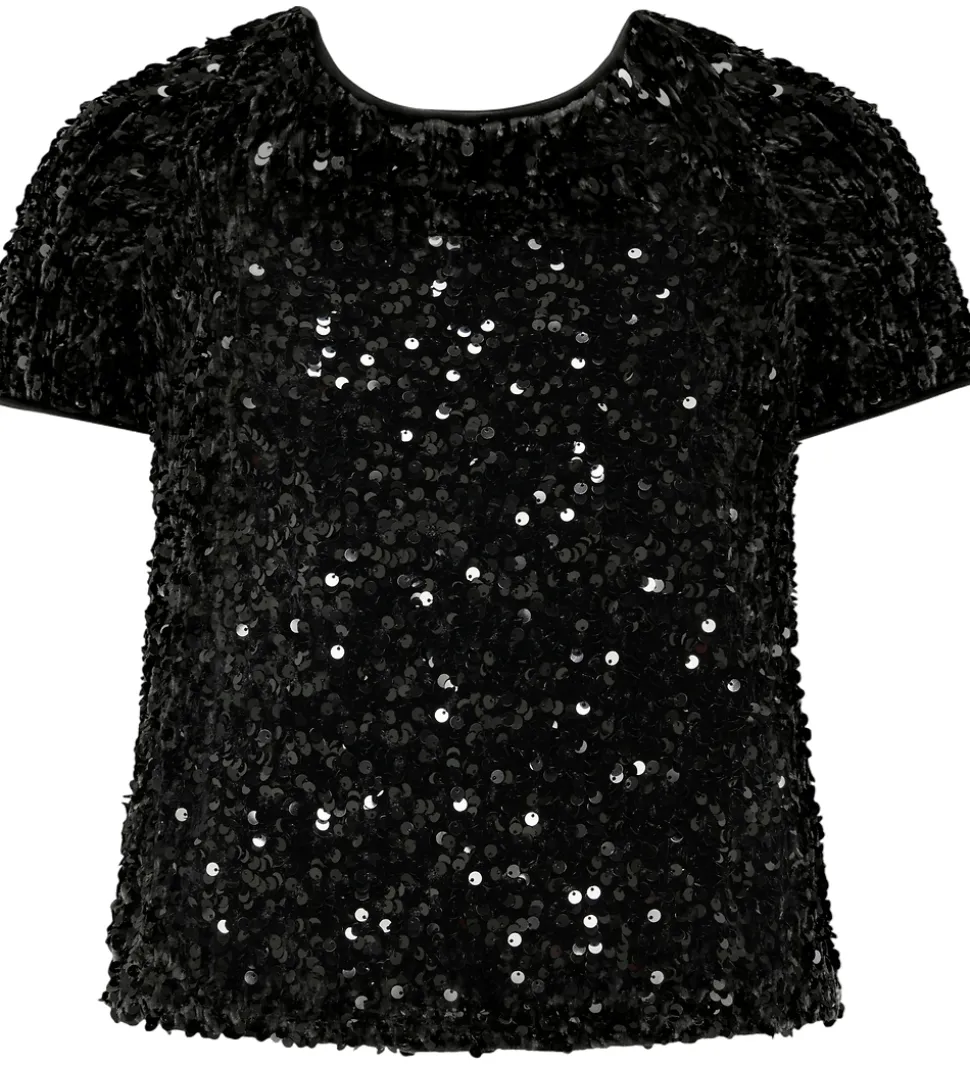 Elegant Kids Only t-shirt i sort med palietter. Kids Only t-shirten har en rund halsudskæring og korte ærmer, som tilføjer et stilrent look. Indvendigt er der et lag polyester, så t-shirten er behagelig at have på.