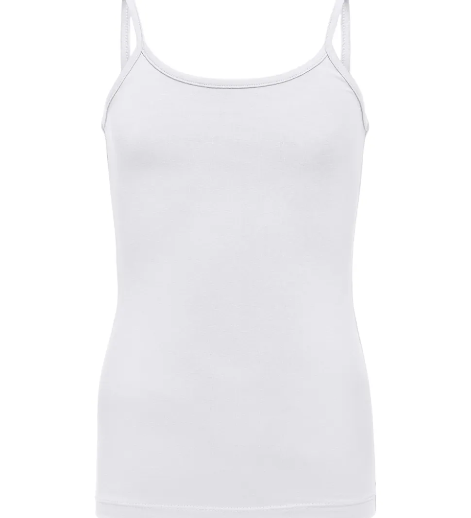 Fin Kids Only top i hvid med tynde, justerbare skulderstropper. Toppen har et enkelt design og en tætsiddende pasform.