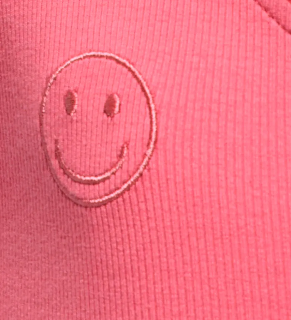 Lækker Kids Only top i rosa rib og med et flot oneshoulder design samt en broderet smiley på fronten.