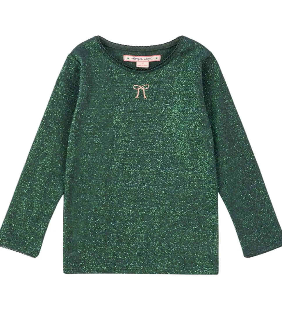 Smart Konges Sløjd bluse i mørkegrøn med glimmer, og den er lavet i en strækbar kvalitet.