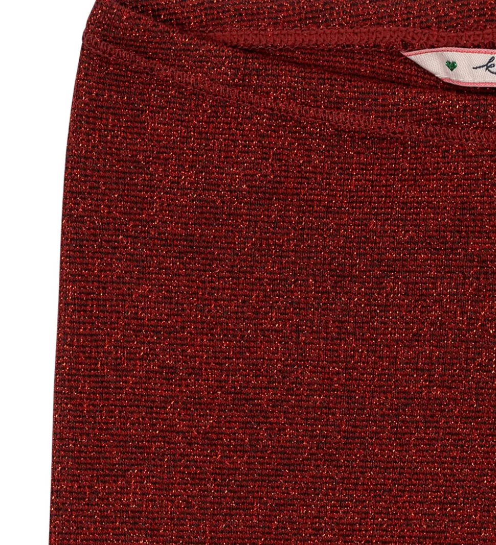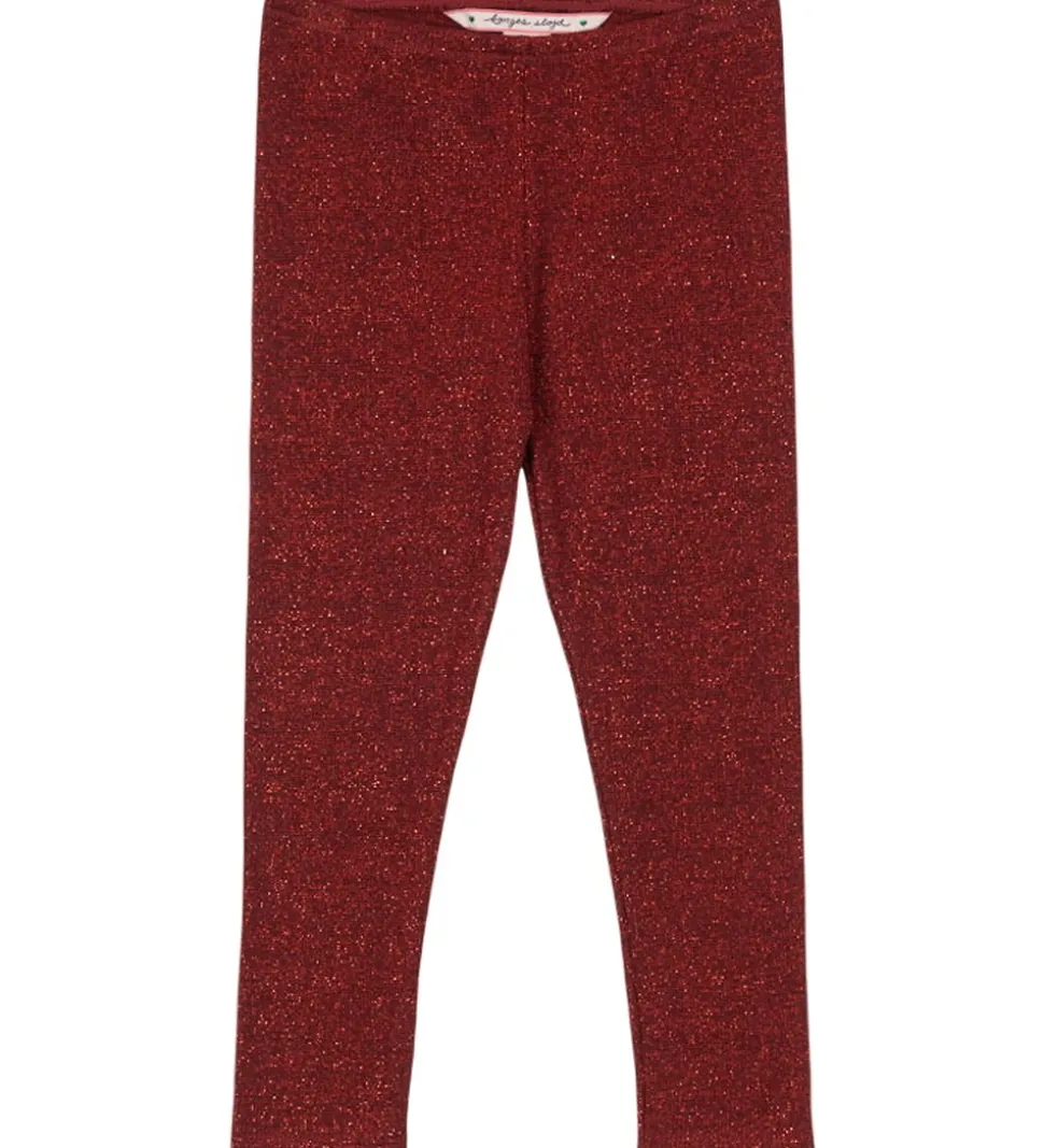 Elegante Konges Sløjd buksre i en dyb rød farve med glimmer, og den er lavet i en strækbar kvalitet. Bukserne har lange ben og en tætsiddende pasform, og i livet har de en smal elastikkant.