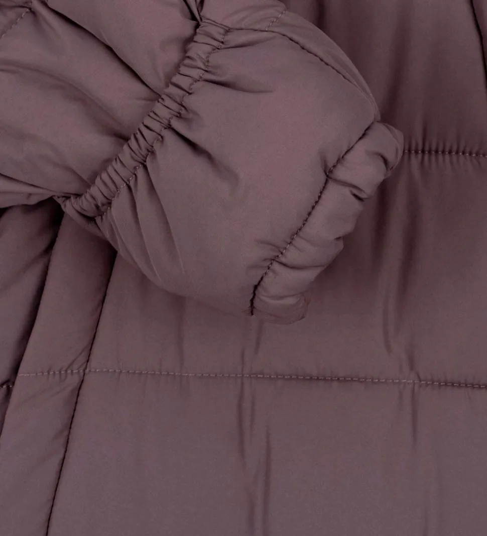 Smart Konges Sløjd flyverdragt i en støvet lilla og med et lille kirsebærprint samt vandrette syninger.