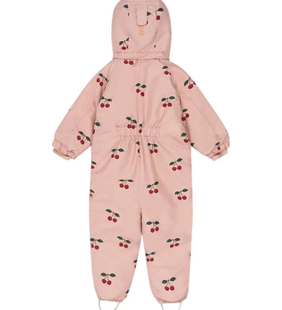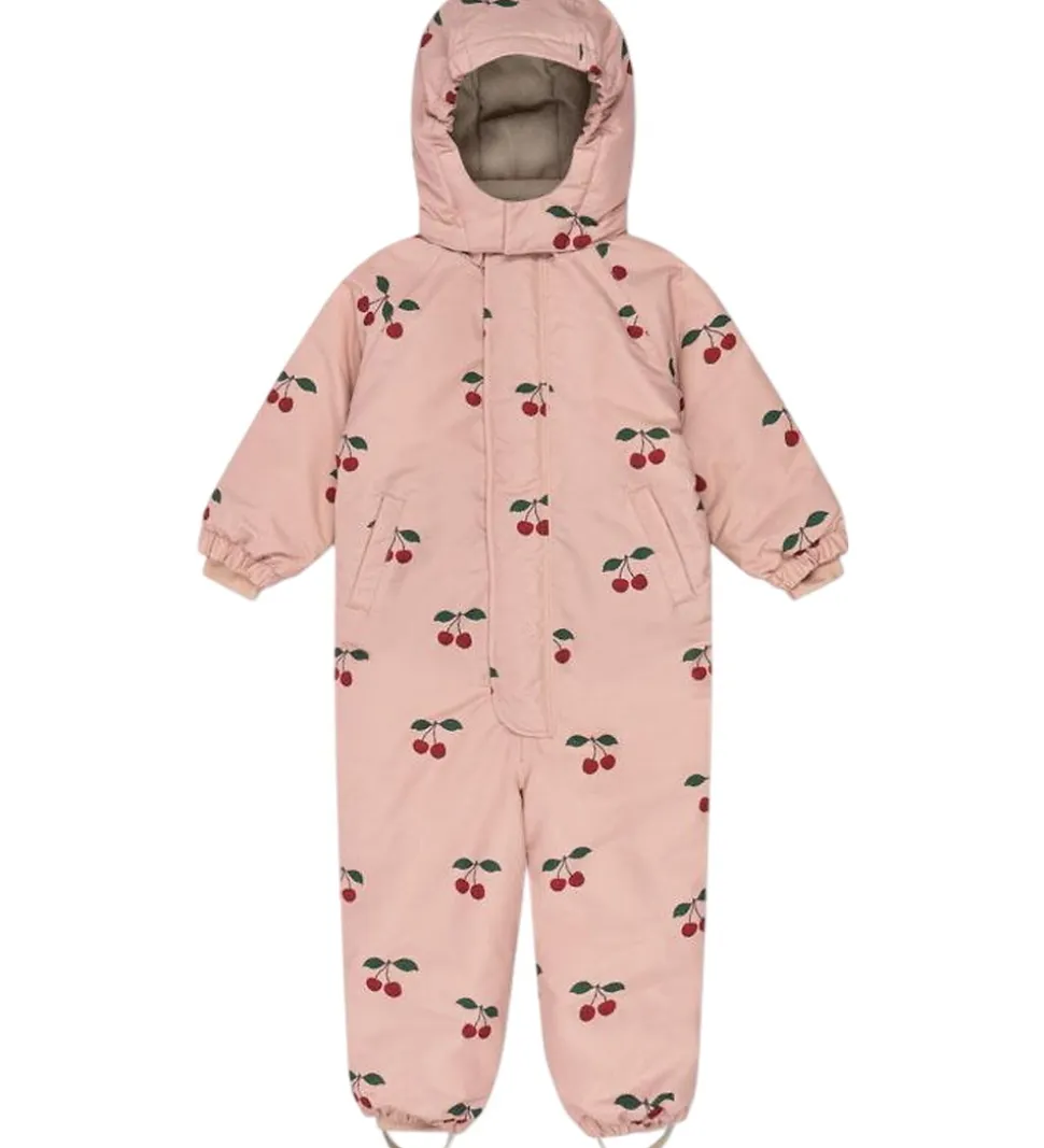 Fin Konges Sløjd flyverdragt i en støvet rosa med et alloverprint af kirsebær.