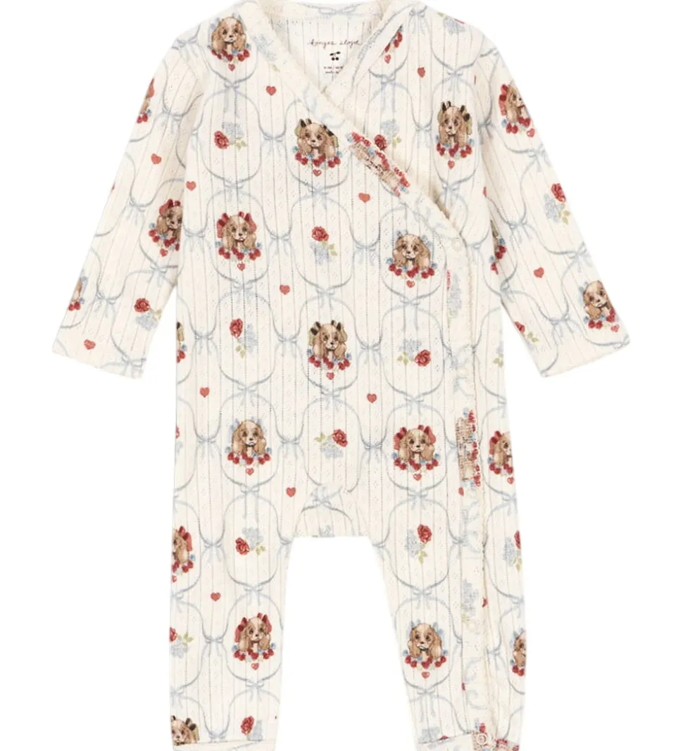 Nydelig Konges Sløjd heldragt i beige med et sødt print af små hunde i blå og rosa nuancer.