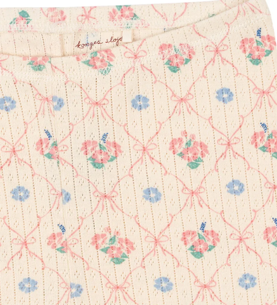 Charmerende Konges Sløjd leggings i lysebige med et delikat blomstermønster i pastelfarver. Konges Sløjd leggingsene har en elastisk talje og en blød, ribbet struktur.
