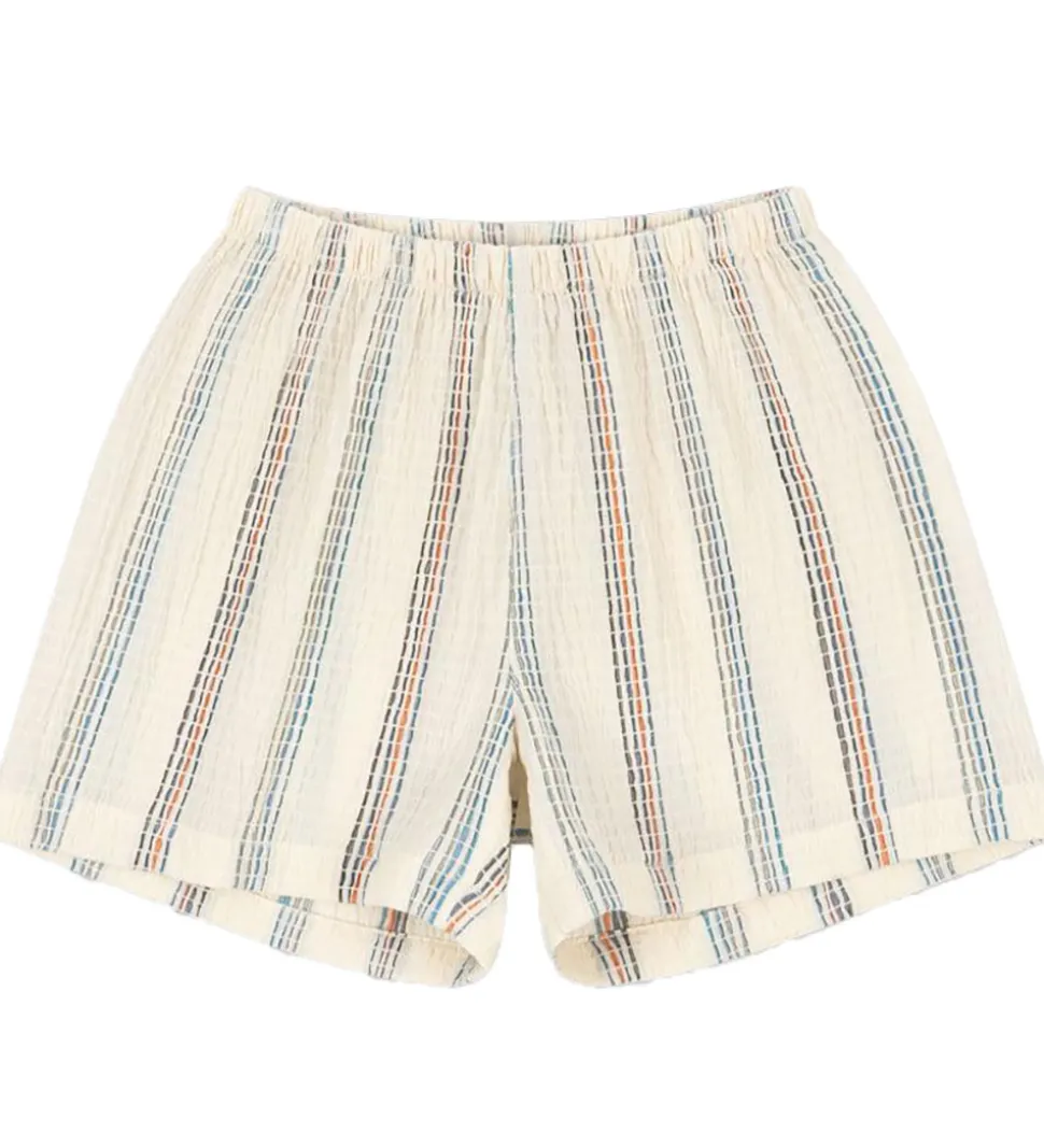 Attraktive Konges Sløjd shorts med et stilrent, lodret stribemønster i bløde, farverige nuancer. Konges Sløjd shortsene har en praktisk elastisk talje, der sikrer en behagelig pasform.