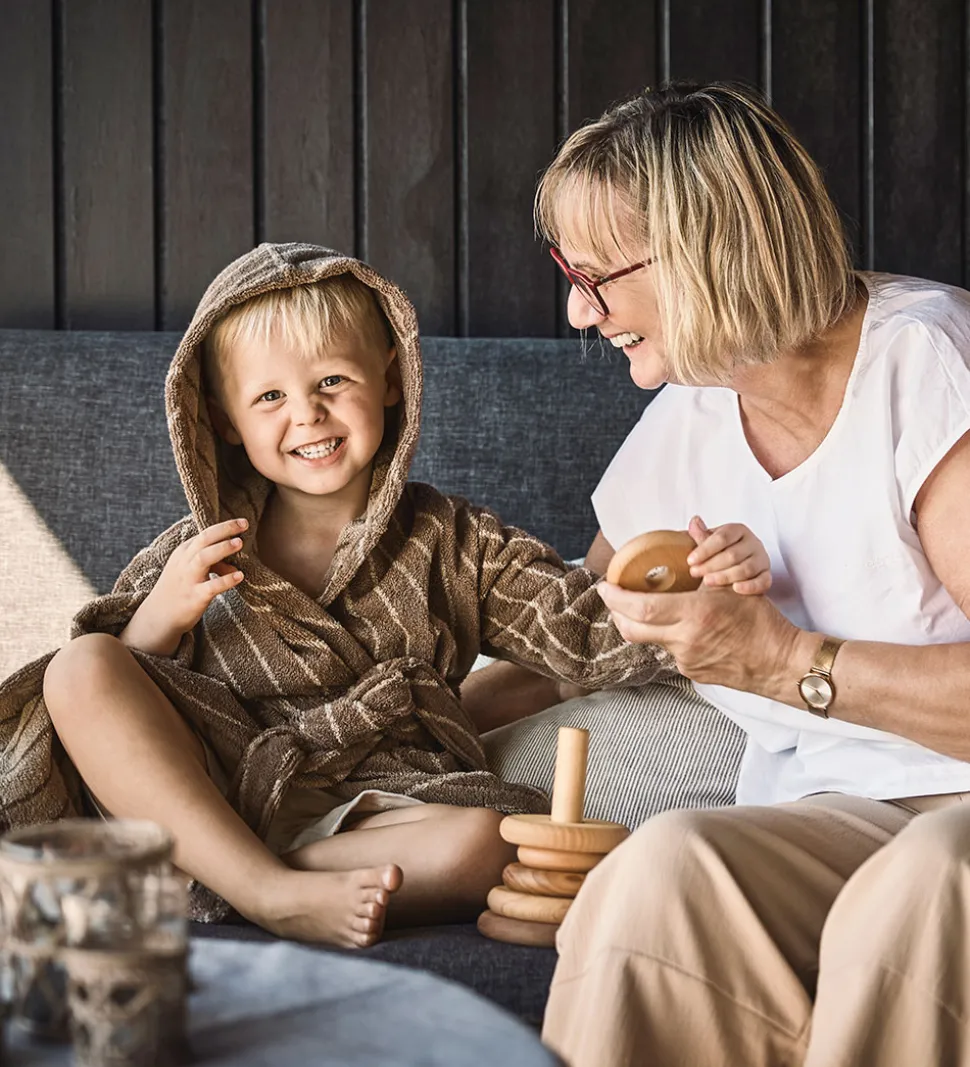 Lækker Leander badekåbe i en naturlig brun nuance med en blød stribet struktur.