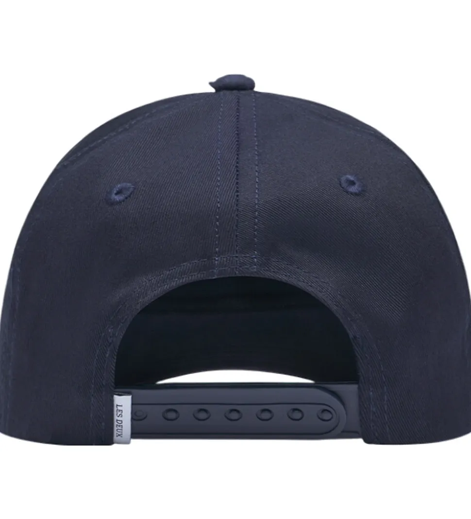 Smart Les Deux kasket i navyblå med et markant rødt logo broderet på fronten.