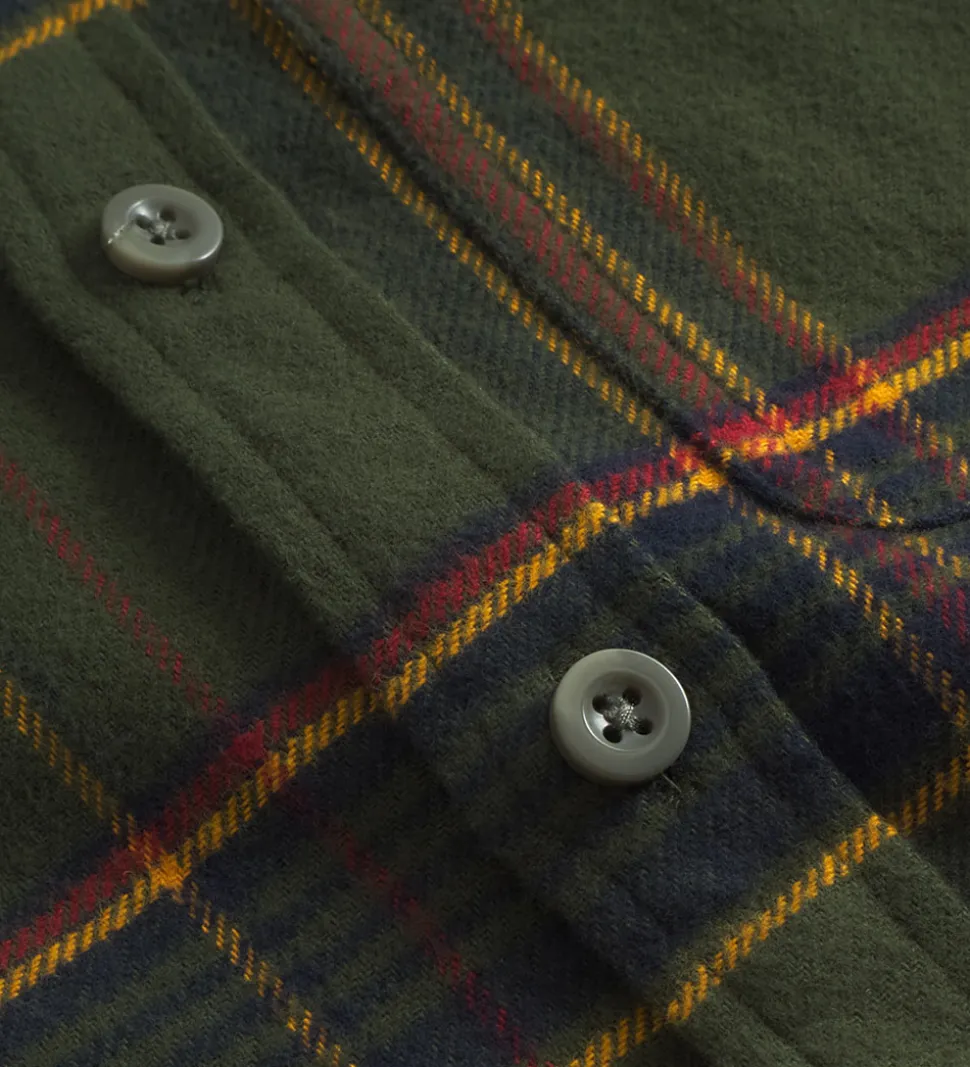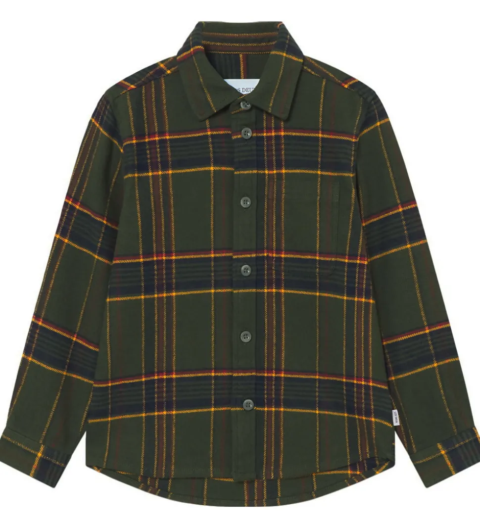 Skøn Les Deux skjorte i armygrøn med ternet mønster i navyblå, gul og rød. Skjorten har lange ærmer, en klassisk krave og knaplukning fortil. Den har en brystlomme fortil og er fremstillet i en blød kvalitet.