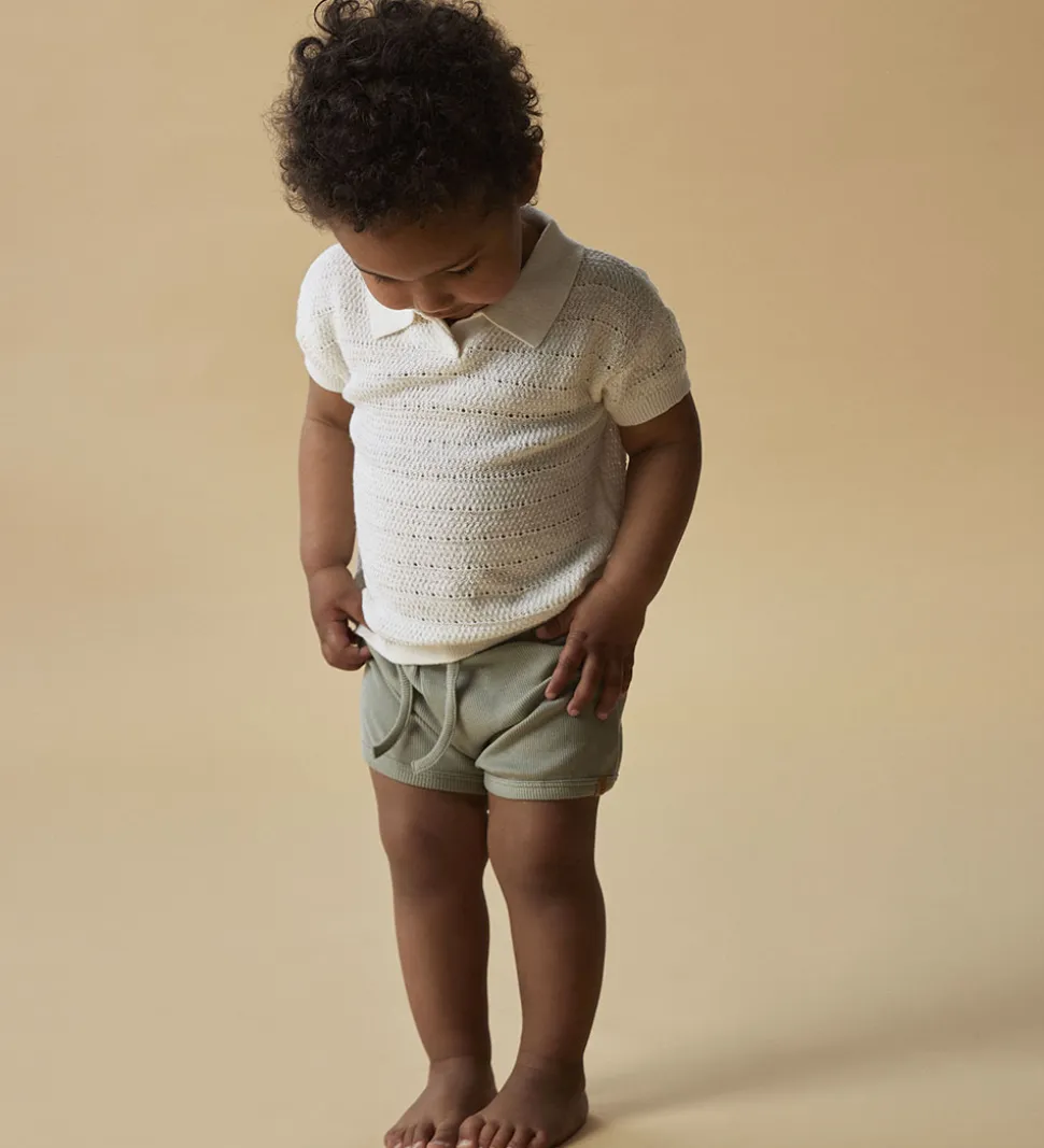 Flotte Lil’ Atelier shorts i en støvet grøn nuance med en lækker ribstruktur, der tilføjer tekstur og strækbarhed.