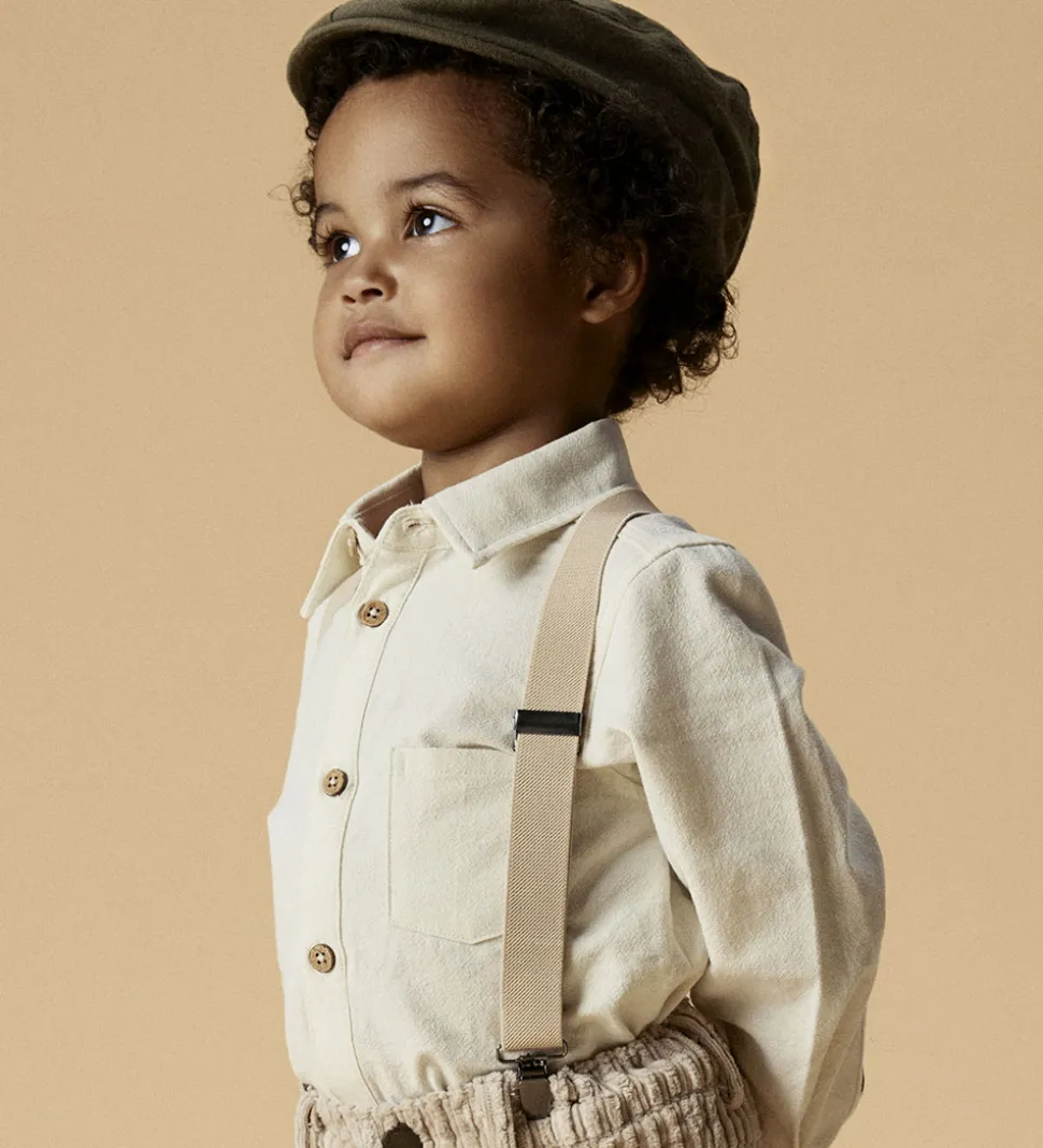 Stilren Lil’ Atelier skjorte i en blød, lys beige. Skjorten har lange ærmer og en klassisk krave. Foran er der træknapper og en praktisk brystlomme. Lil’ Atelier skjorten har en enkel og tidløs stil.