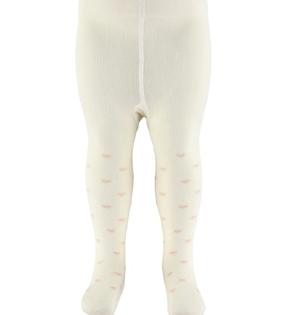 Fine strømpebukser fra Lil Atelier i hvid med et alloverprint af små rosa hjerter. Strømpebukserne har en behagelig strikket struktur og elastik i livet, som giver en god pasform.