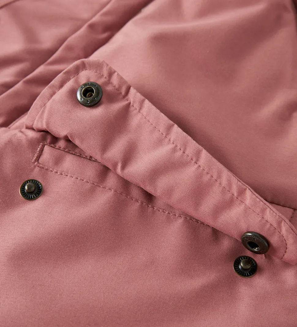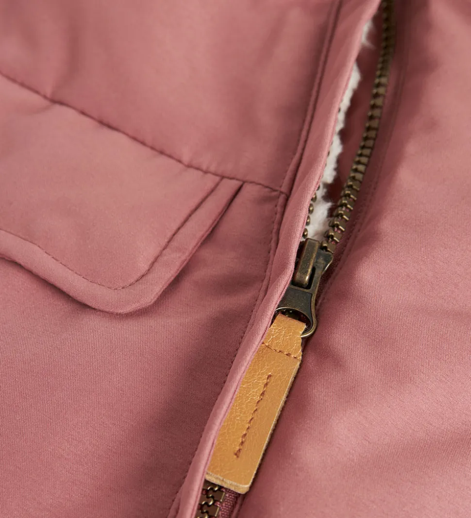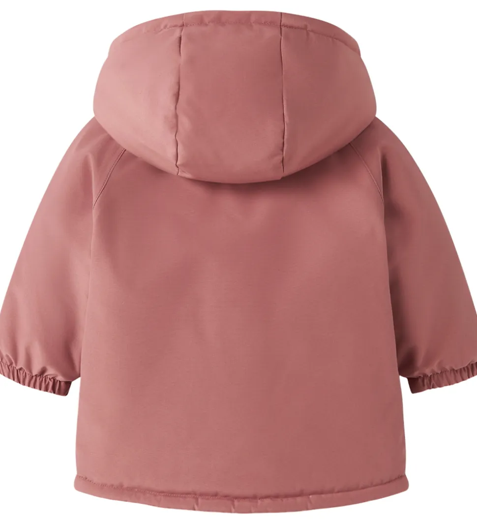Fin Lil Atelier vinterjakke i en støvet, ensfarvet rosa og med en fin klaplomme på maven.