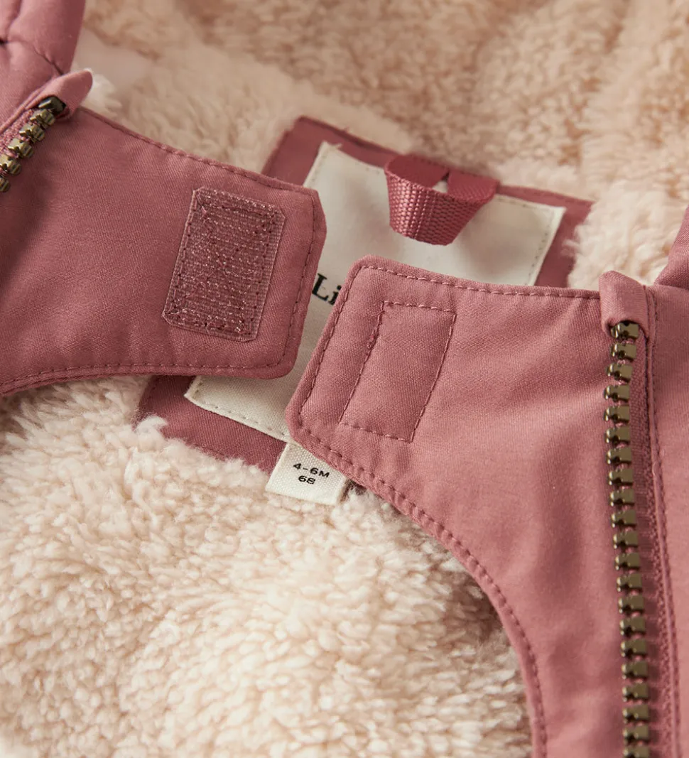 Lil Atelier vinterjakken har lange ærmer og en fastsyet hætte. Jakken lukkes med to, skrå lynlåse med indvendig og udvendig vindstolpe, hvilket gør den nem at få af og på. Derudover kan den lukkes til indvendigt med velcro.