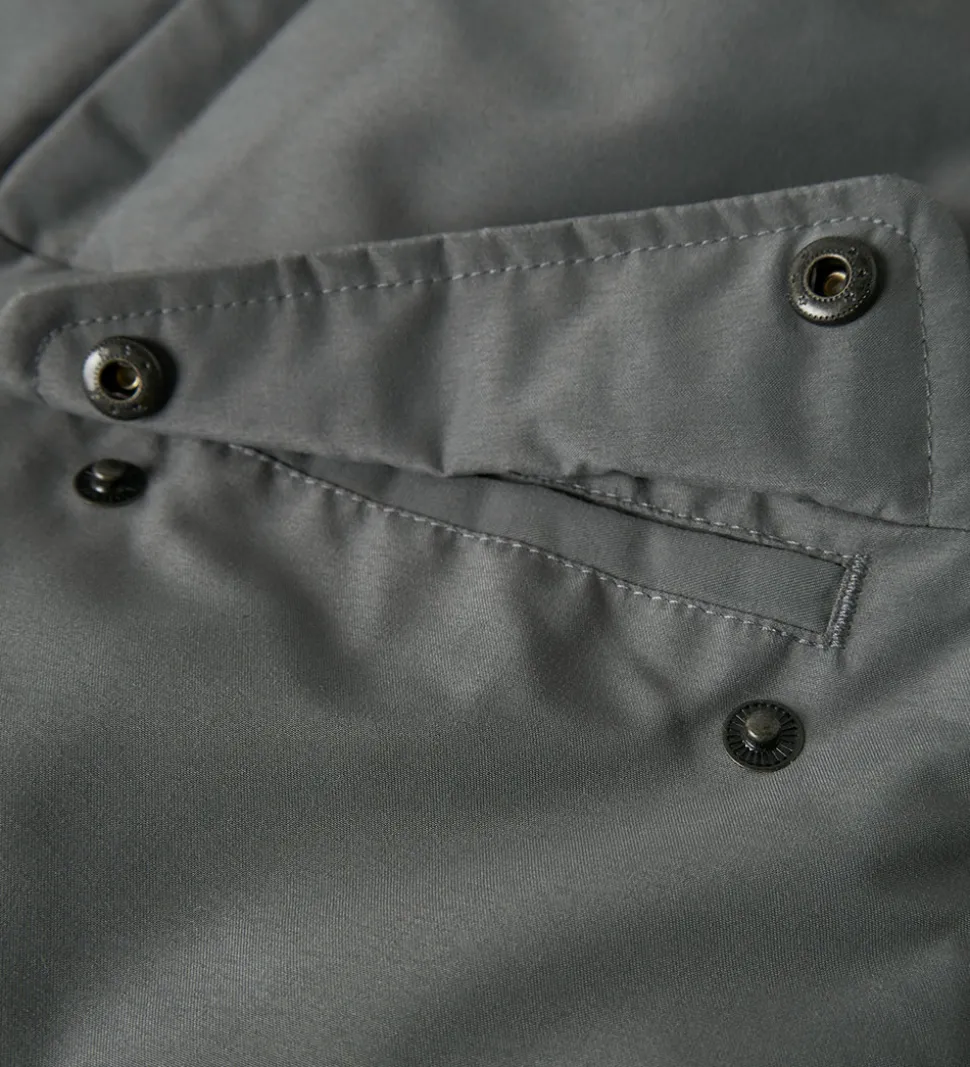 Lækker Lil Atelier vinterjakke i en flot, ensfarvet grå og med en fin klaplomme på maven.