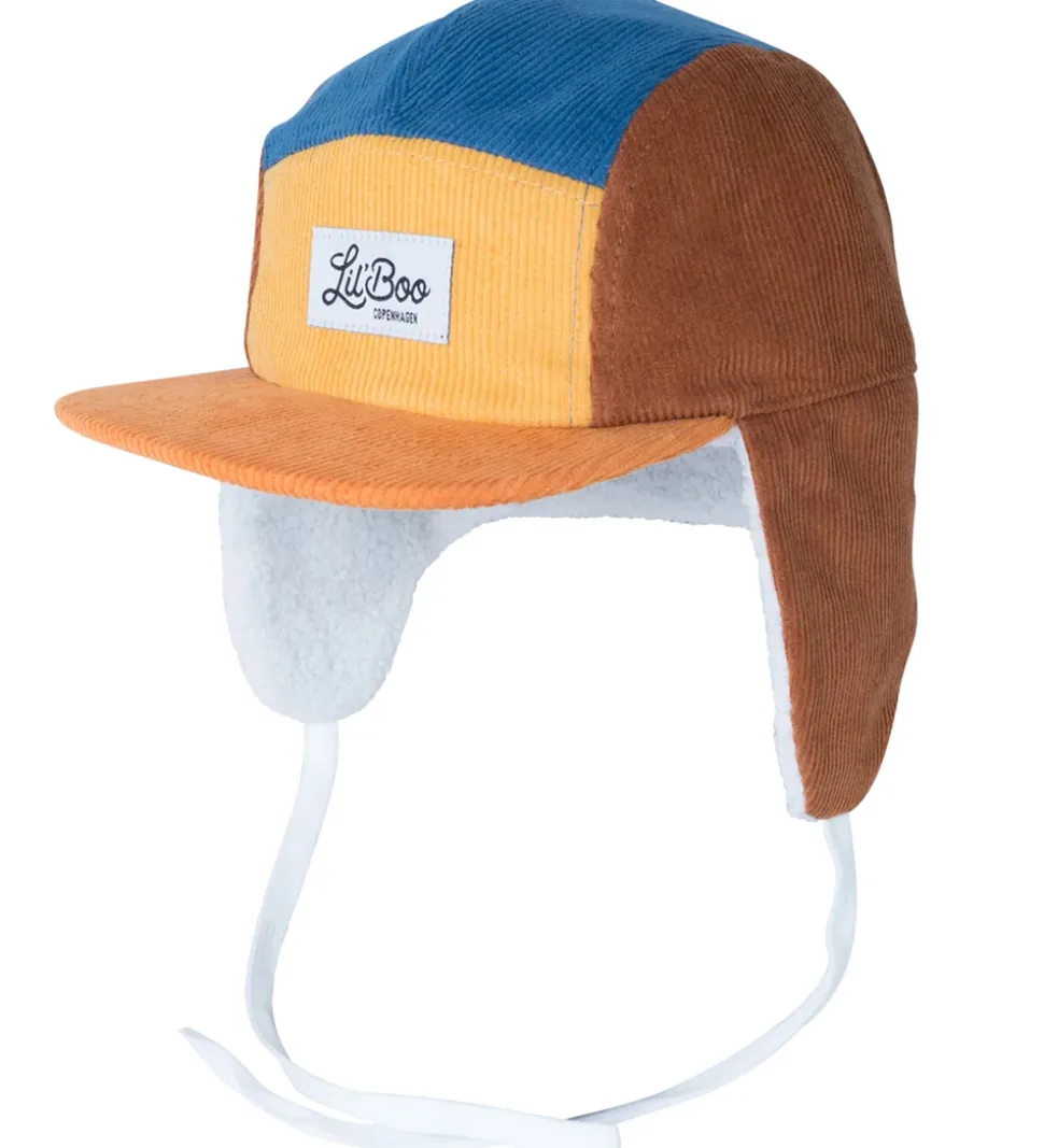 Farverig Lil’ Boo Copenhagen kasket med en ribbet struktur, i en kombination af orange, brun og blå med en logoprint foran. Denne kasket har blødt teddyfleece og lange ører hvilket gør den ideel til at holde hovedet varmt på kolde dage.