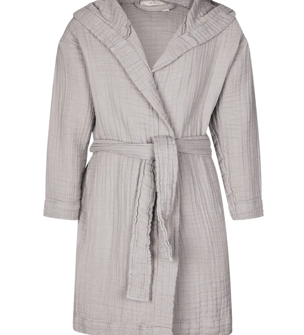 Fin Lille Kanin badekåbe i ensartet gråbrun med et broderet, diskret logo.
