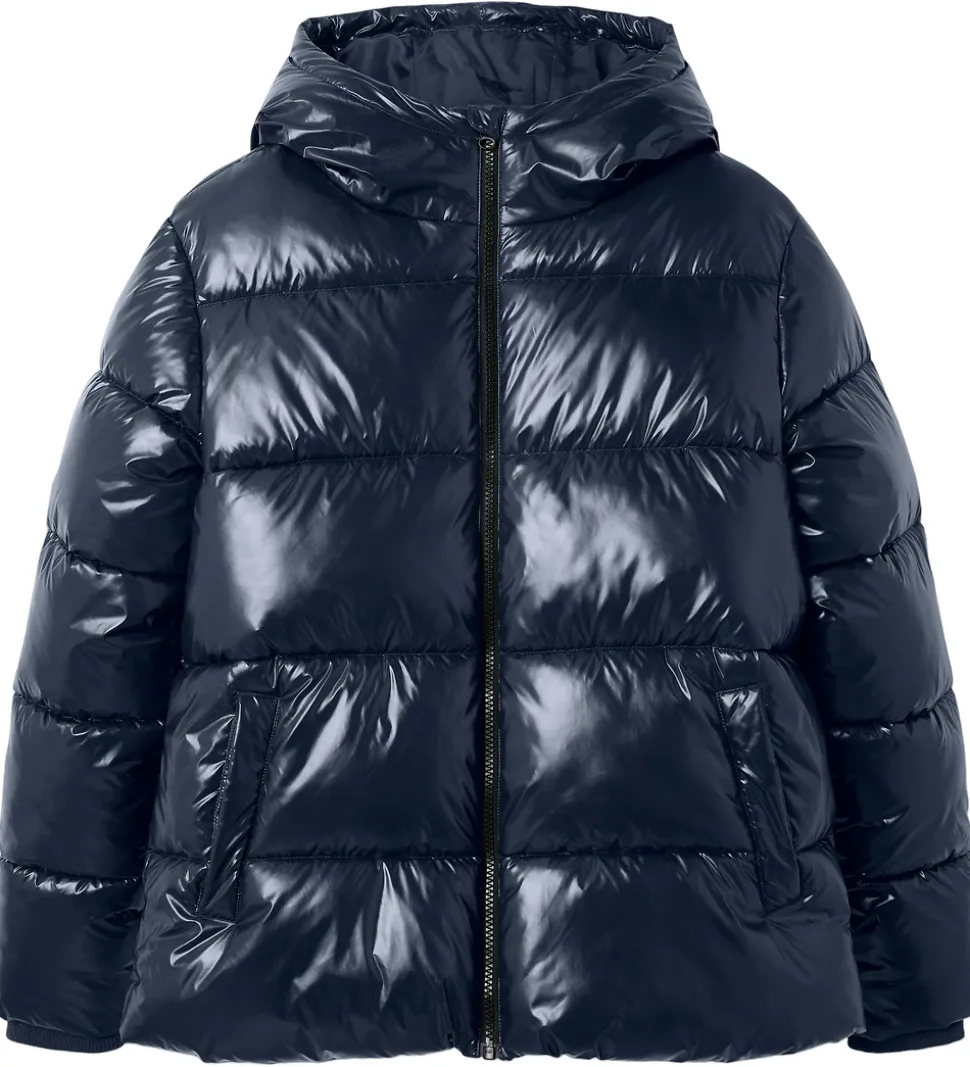 Smart LMTD dynejakke i ensfarvet navy med en skinnende overflade.