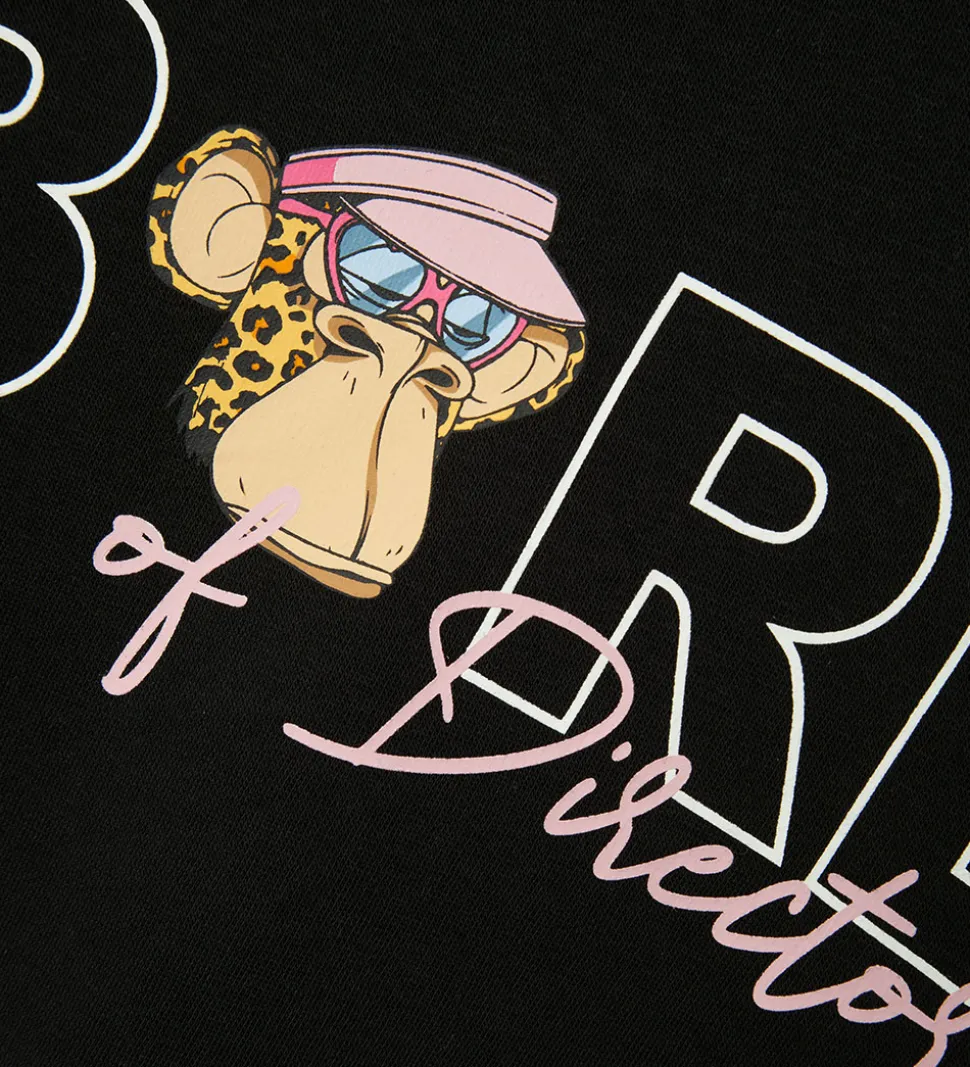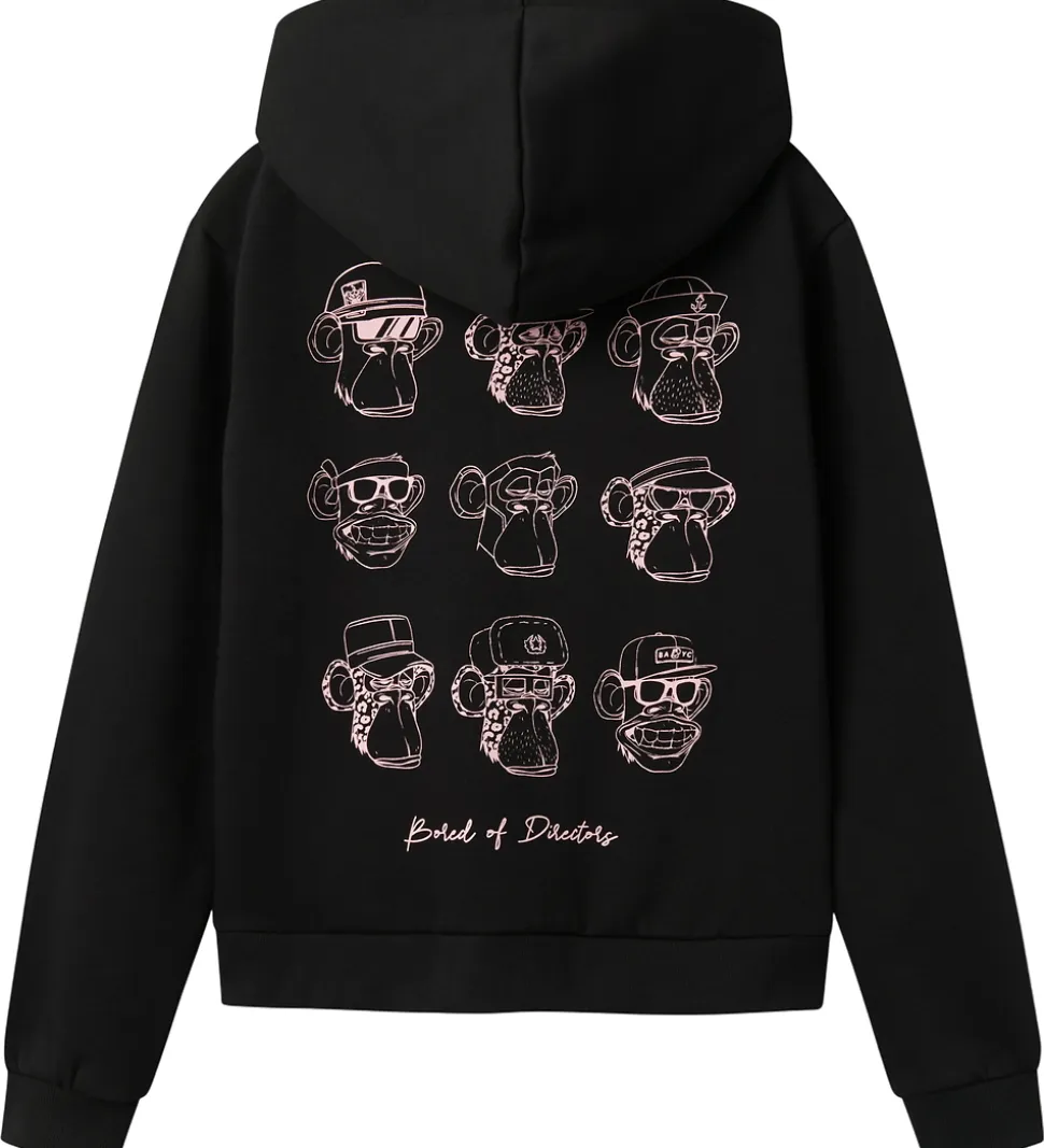 Stilfuld LMTD hættetrøje i klassisk sort med teksten “Bored of Directors” på fronten. Motivet inkluderer en farverig illustration, der giver et unikt look, og på ryggen er illustrationen rosa i flere varianter. Hættetrøjen har en rummelig hætte og brede ribkanter ved ærmerne samt i livet, hvilket sikrer en god pasform. Ideel til at tilføre garderoben et moderne præg.