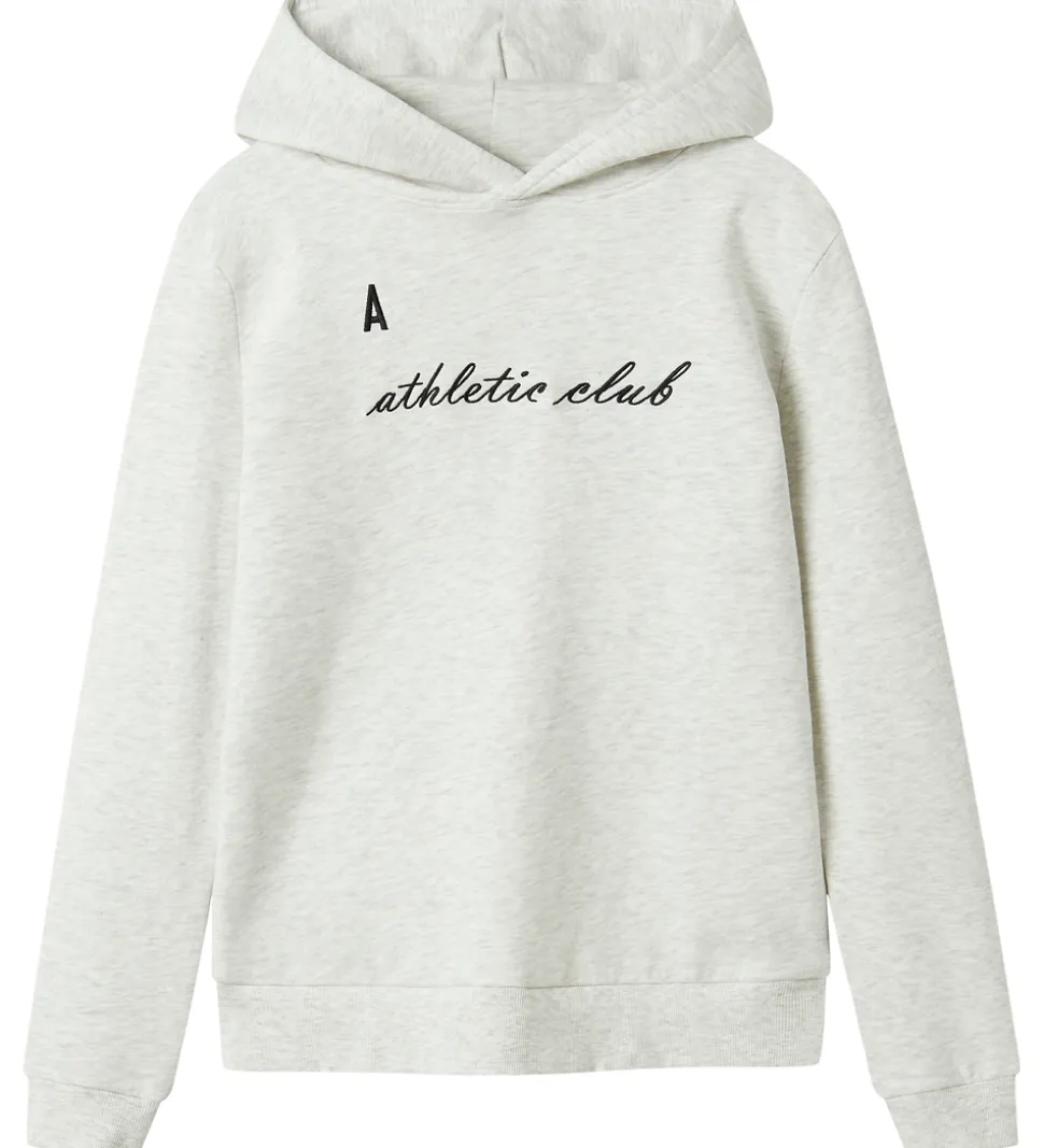 Stilren LMTD hættetrøje i en meleret, lysegrå nuance. Hættetrøjen har et enkelt og moderne design med teksten “athletic club” i sort på fronten. Detaljerne inkluderer en klassisk hætte samt ribkanter ved ærmerne og nederst for et afslappet look.