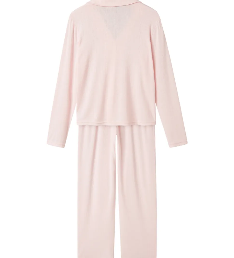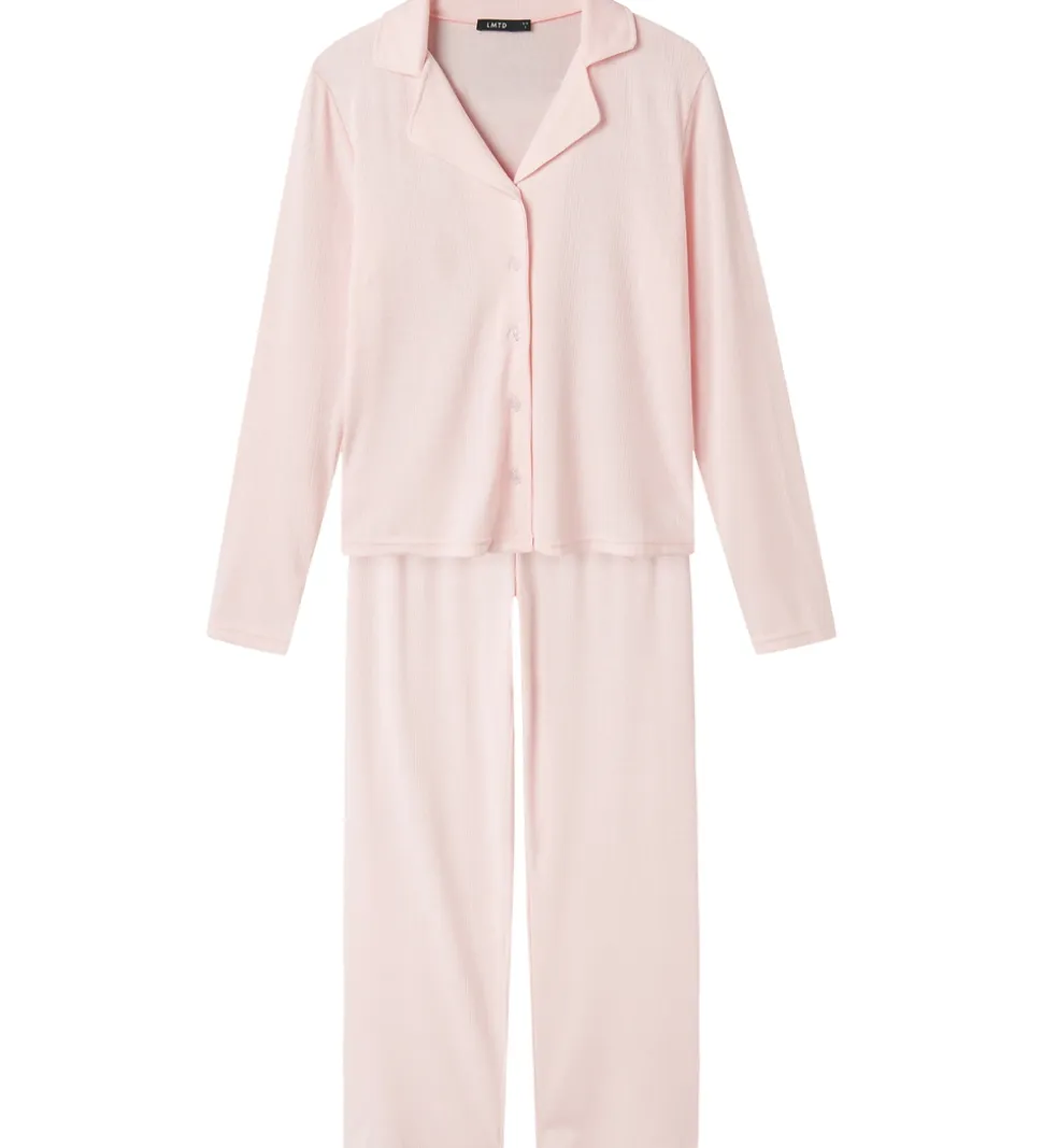 Smart LMTD nattøj bestående af en natskjorte og et par natbukser i rosa med fint hulmønster. Natskjorten har en skjortekrave og gennemgående knapper fortil. Natbukserne har en bred elastik i taljen, som kan justeres med knapper indvendigt. Nattøjet er fremstillet i en blød og behagelig bomuldskvalitet.