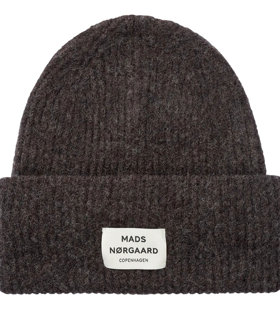 Lækker Mads Nørgaard hue i ensfarvet mørkebrun i en strikket kvalitet med en flot ribstruktur.