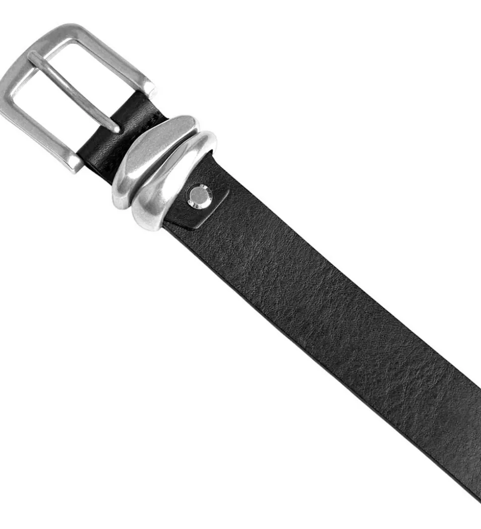 Markberg bæltet kan strammes ind fem forskellige steder og snippen holdes på plads af to sølvfarvet metalspænder.