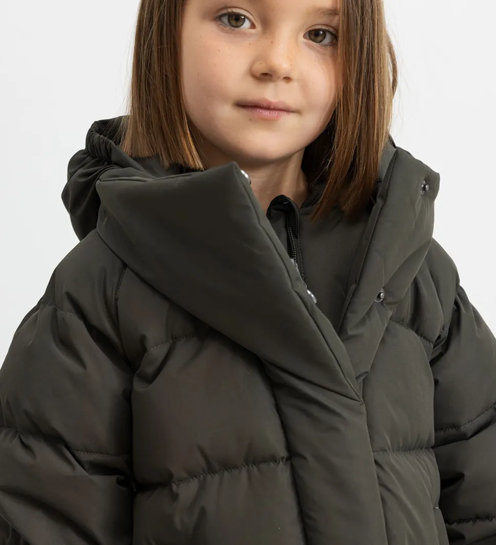 MarMar dunjakken har en mellemhøj krave og en aftagelig hætte, som sidder fast med trykknapper. I siderne på hætten er der elastikkanter, som giver hætten en god pasform. Dunjakken har lange ærmer med snefang med brede elastikkanter i ærmeåbningerne.
