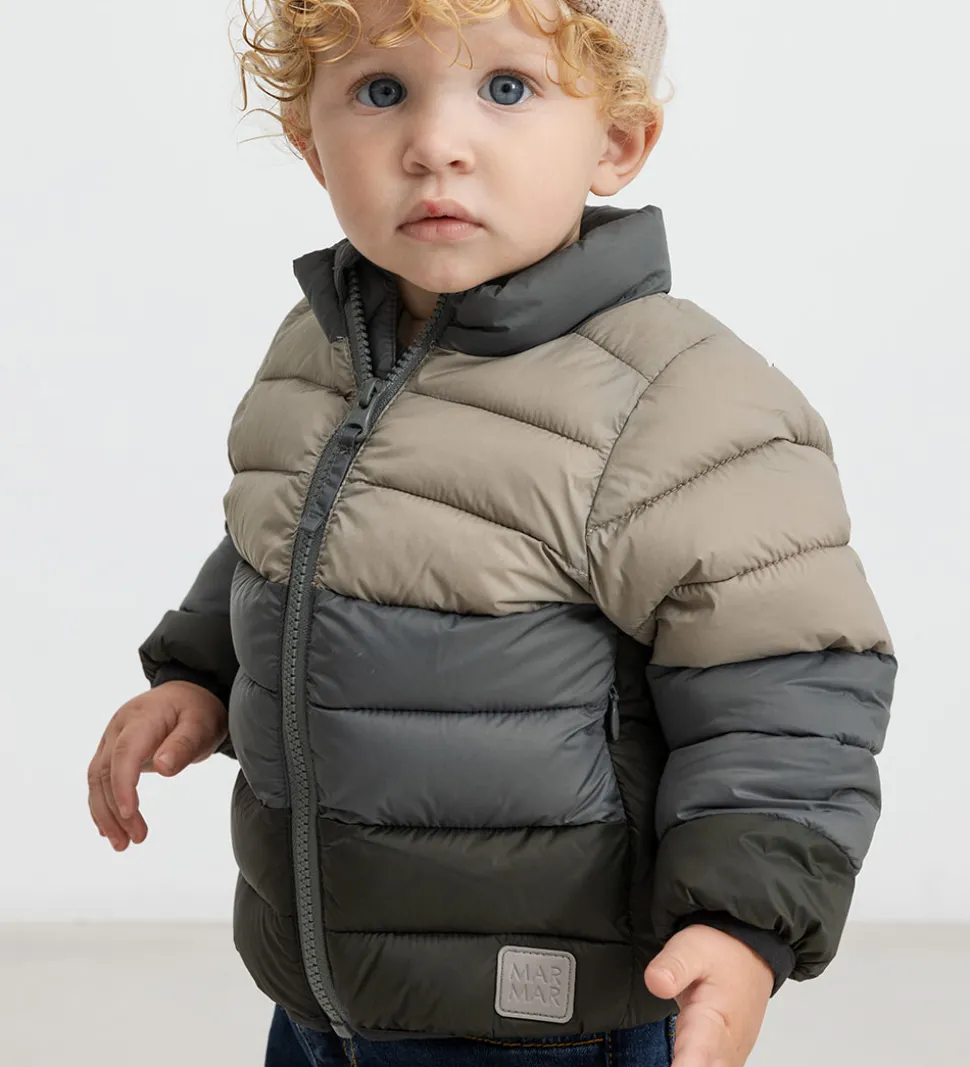 MarMar dunjakken har smalle, elastiske kanter, og den lukkes med en lynlås med hagebeskytter og indvendig vindstolpe. I siderne er der praktiske lommer, som lukkes med en skjult lynlås. Dunjakken har et glatvævet for, og den har en let polyestervattering.