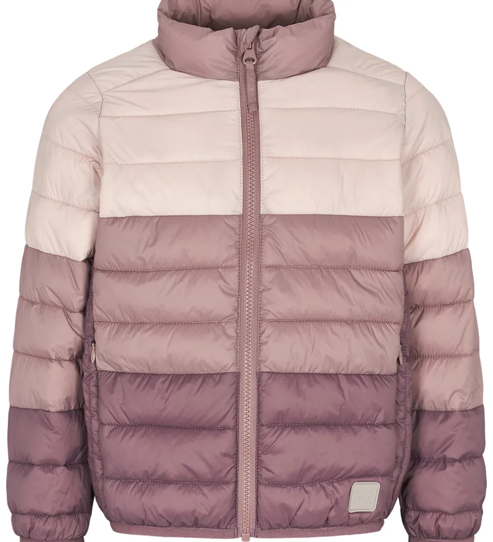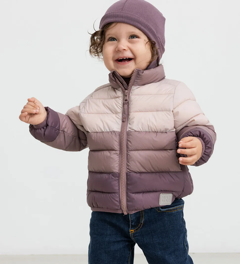 Flot MarMar dunjakke med brede, vandrette striber i rosa nuancer.
