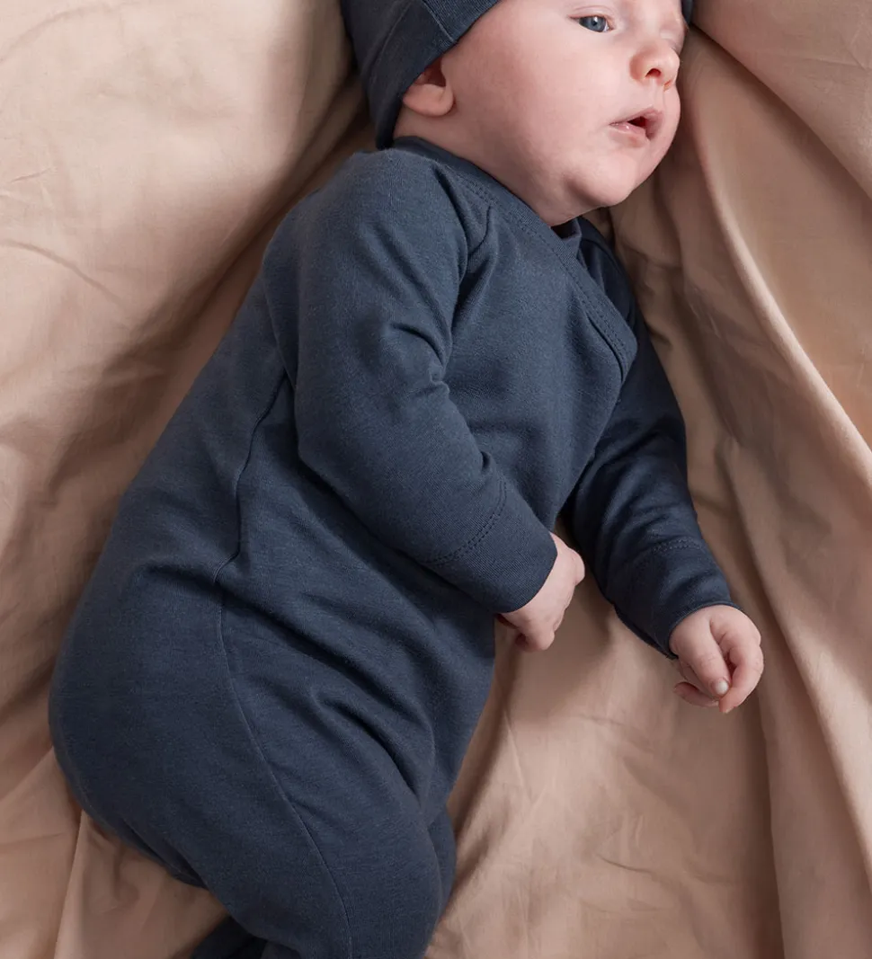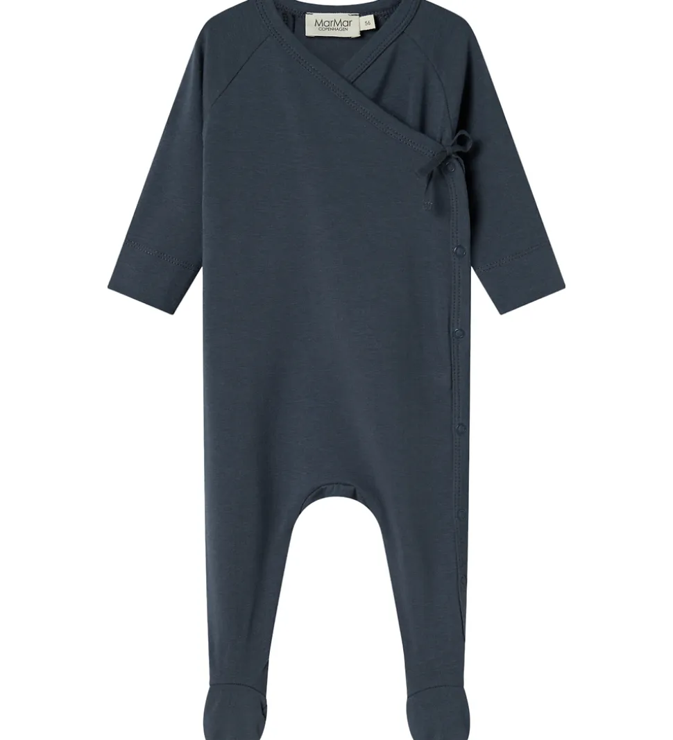 Heldragten fra MarMar har lange ærmer og ben med faste fødder, og den lukkes med trykknapper langs siden. En praktisk bindedetalje ved siden giver et ekstra touch til designet.