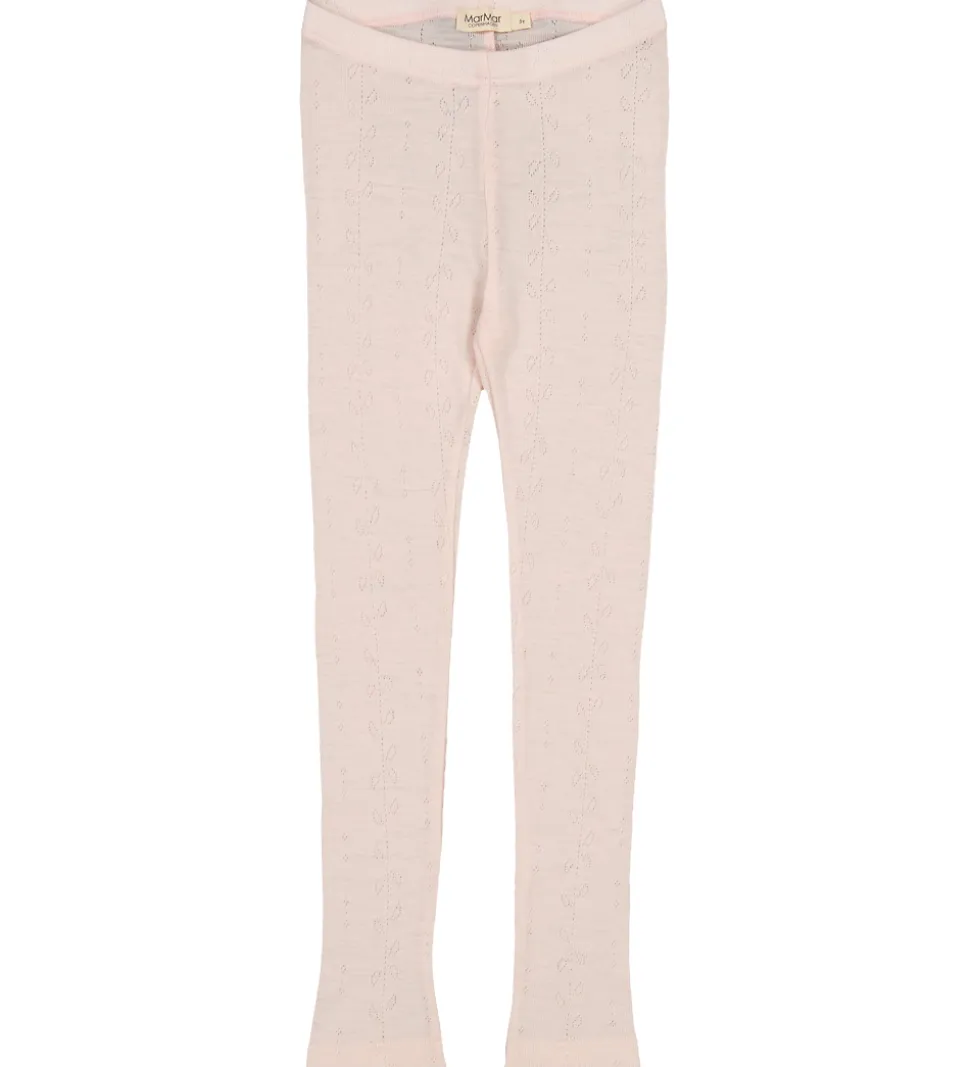 Elegante MarMar leggings i en lys rosa farve og lavet i en let uldkvalitet. MarMar leggings har et smukt hulmønster, som tilføjer et strejf af stil. Perfekt pasform sikrer komfort hele dagen.