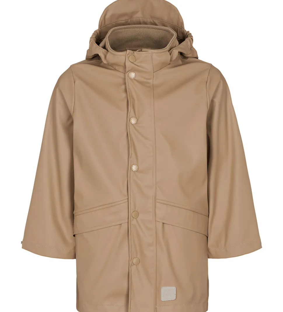 Lækker MarMar regnfrakke i ensfarvet brunt PU.