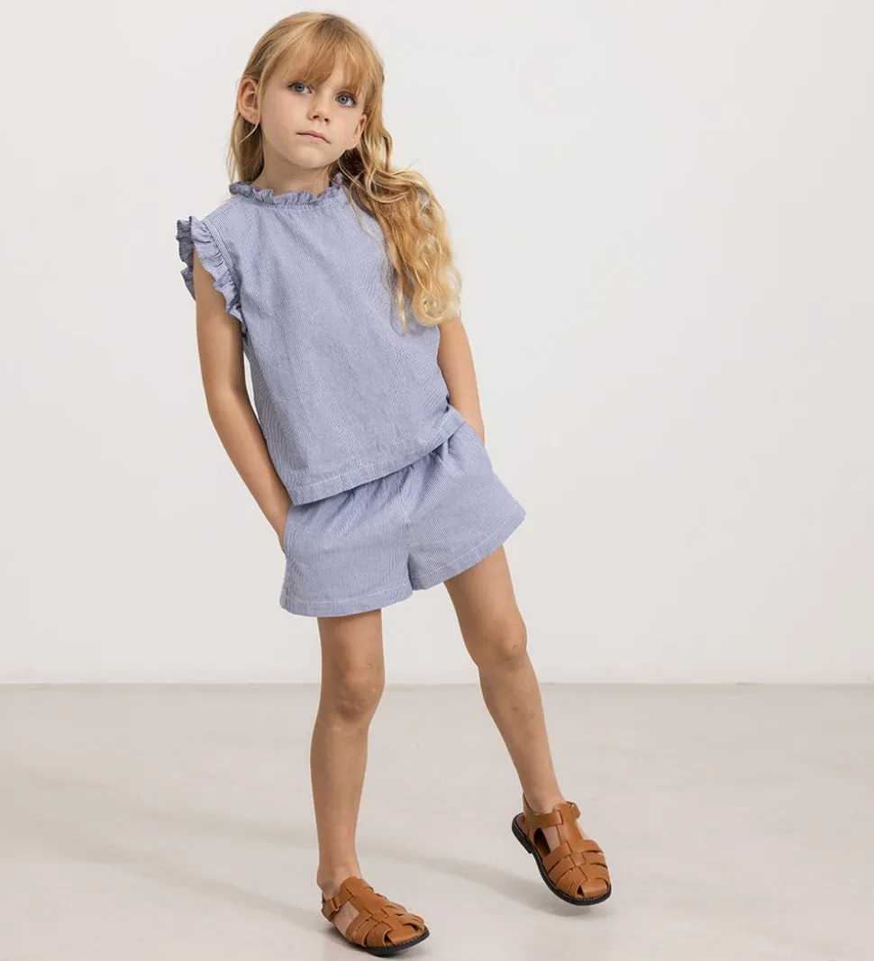 Fine MarMar shorts i en klassisk hvid med smalle lodrette blå striber. MarMar shortsene har en behagelig elastisk talje, der sikrer god pasform. Perfekt balance mellem stil og komfort.