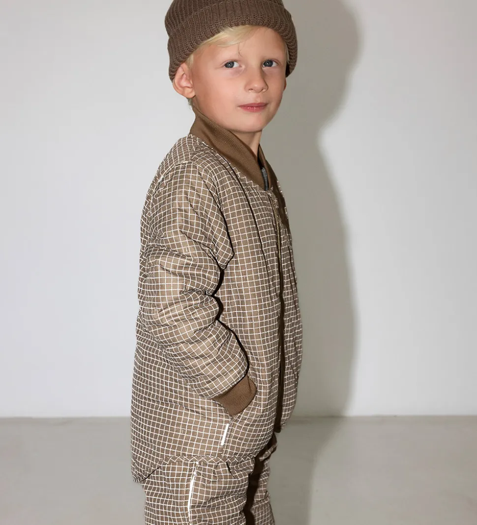 Flotte MarMar termobukser i brun med et ternet mønster med refleksprint.