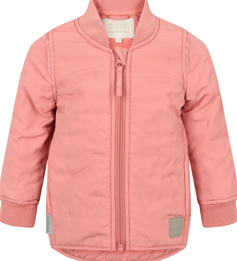 MarMar termojakken har brede ribkanter, og den lukkes med en lynlås med hagebeskytter og indvendig vindstolpe. I siderne er der praktiske lommer, og bagpå har den ekstra længde, som går ned over numsen. Som en smart detalje kan den ekstra længde bukkes op og holdes fast med velcro.