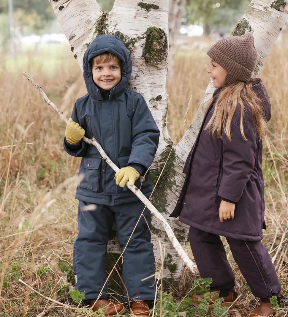 Skøn MarMar vinterjakke i mørk lilla med praktiske refleksdetaljer.